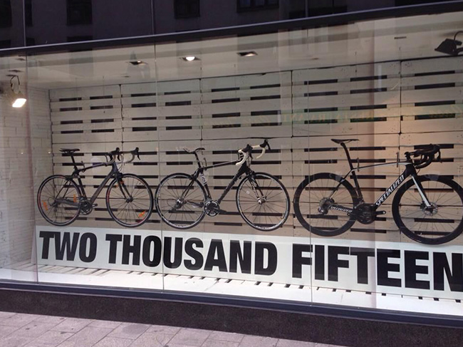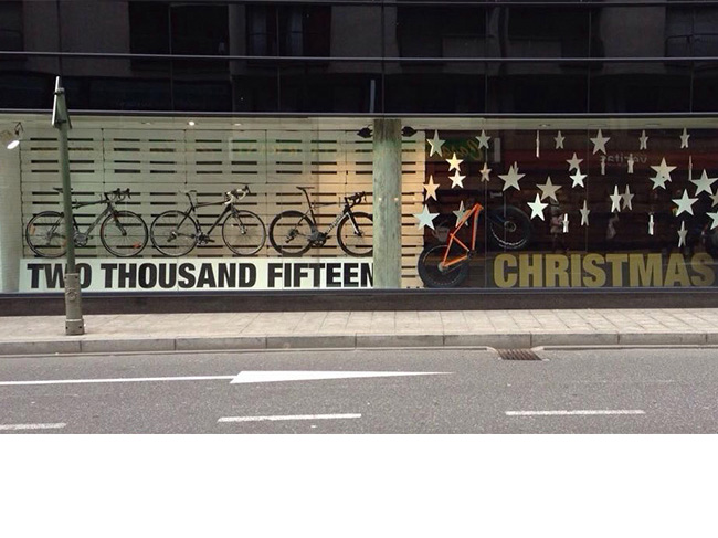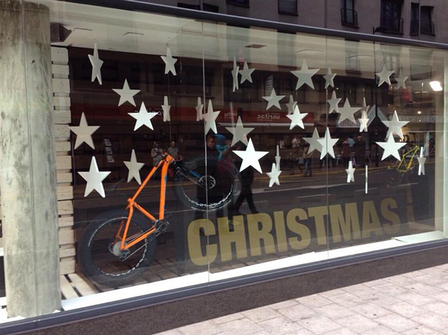 Creación y montaje de escaparate low cost para Jorma Bike Experience en Andorra la vella. Navidad 2014_2015. Colaboración con Molooh Studios Andorra.
